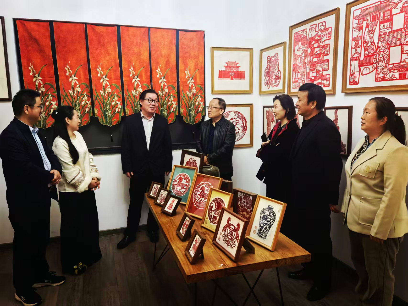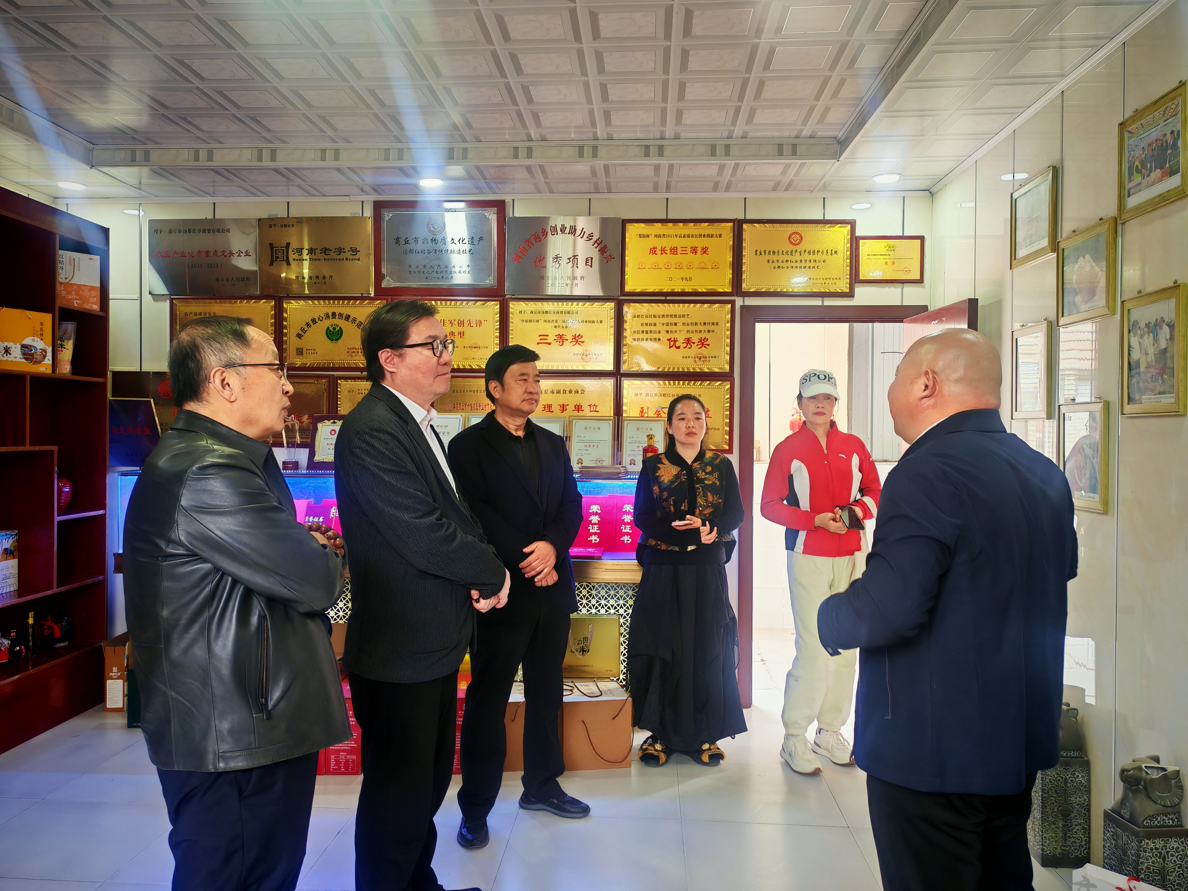研讨会后,高建立院长和谢芳副主席陪同王无际副主席一行考察了商丘市非遗美育馆、商丘归德剪纸非遗工作室、商丘古城归德魏木版年画馆、汉画像石馆、火神台以及虞城县谷熟镇红粘谷酒酿造技艺制造工坊、刘氏本草佩香制作技艺工坊等。